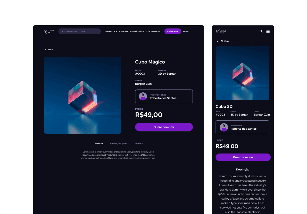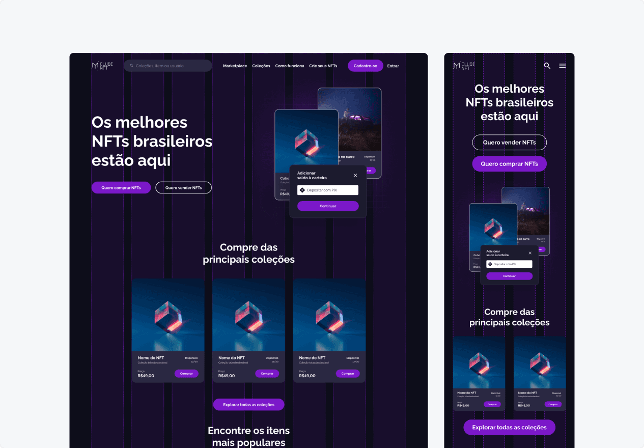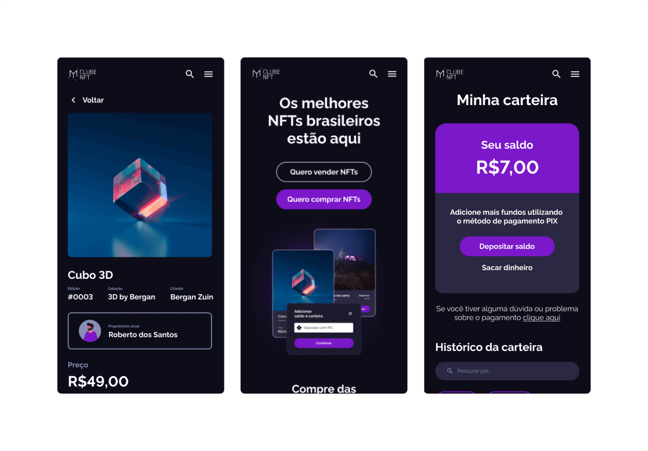 Uma compra de NFT não é tão fácil de ser realizada, podem ter dúvidas técnicas e também de segurança. É por isso que queríamos garantir que o Clube NFT deveria ter uma experiência segura e direcionada para que os usuários não tenham dúvidas do que fazer.