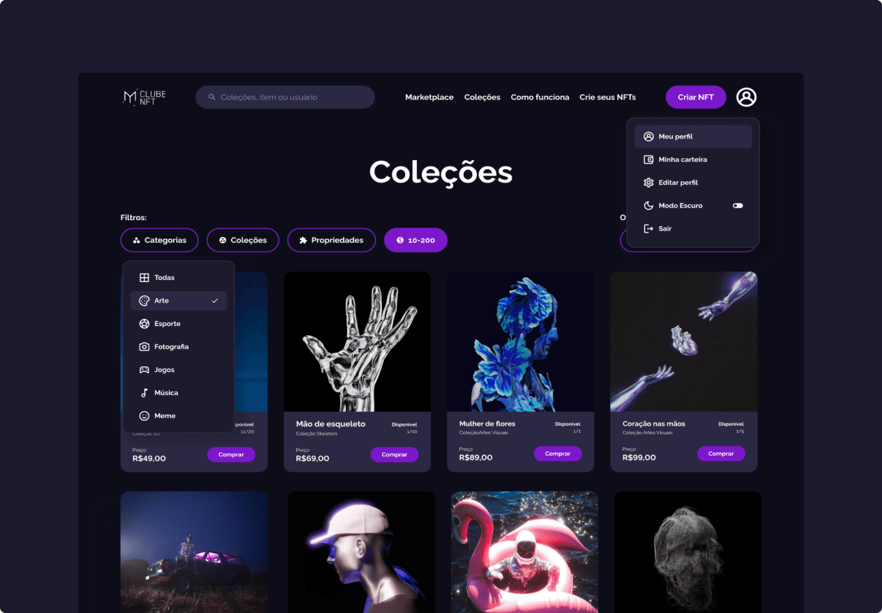 Com o objetivo de ajudar ainda mais este mercado a crescer no Brasil, o Clube NFT foi criado. Uma plataforma para realizar transações de NFTs, tanto para criadores quanto para colecionadores.